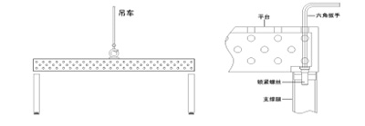 定在平臺的中心用鎖緊銷鎖緊。然后用吊車將平臺吊置安裝的平地上平臺正面朝上,