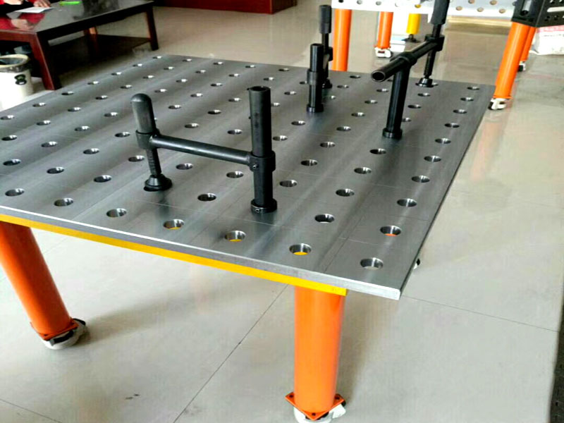 二維柔性焊接工作臺(tái)孔系分為:Ф28和Ф16兩大系列,按結(jié)構(gòu)分為二維柔性組合工裝和三維柔性組合工裝,工裝平臺(tái)按材料分為鋼件平臺(tái)和鑄鐵平臺(tái)以及復(fù)合板平臺(tái);技術(shù)參數(shù):28系列工裝平臺(tái)孔距為100mm,16系列工裝平臺(tái)孔距為50mm,平臺(tái)上均刻有相應(yīng)的網(wǎng)格線,根據(jù)客戶要求,在平臺(tái)的兩直角邊上面可以刻畫毫米標(biāo)度尺;
