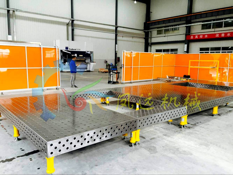 二維柔性焊接工作臺孔系分為:Ф28和Ф16兩大系列,按結(jié)構(gòu)分為二維柔性組合工裝和三維柔性組合工裝,工裝平臺按材料分為鋼件平臺和鑄鐵平臺以及復(fù)合板平臺;技術(shù)參數(shù):28系列工裝平臺孔距為100mm,16系列工裝平臺孔距為50mm,平臺上均刻有相應(yīng)的網(wǎng)格線,根據(jù)客戶要求在平臺的兩直角邊上面可以刻畫毫米標(biāo)度尺;